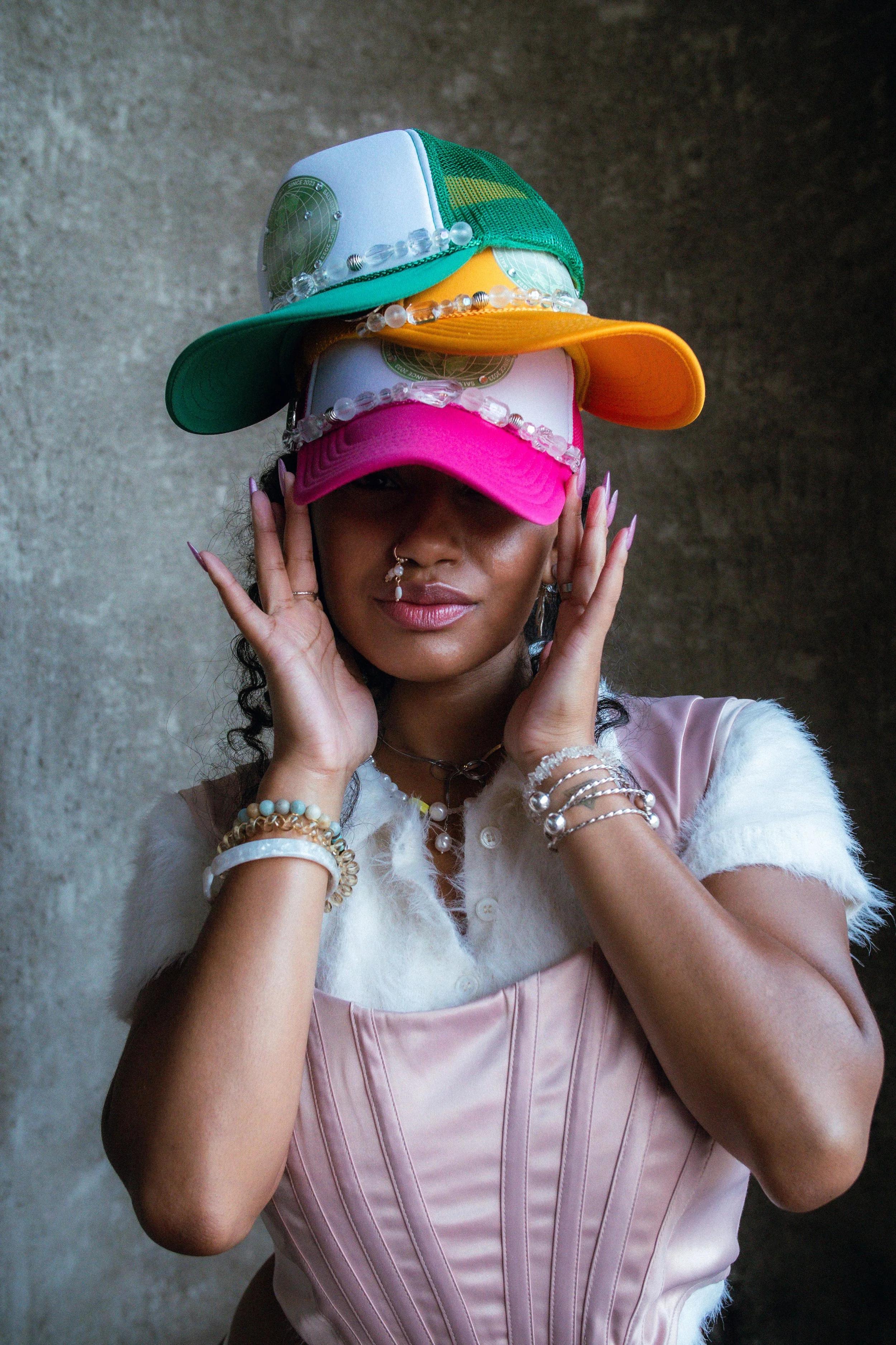 KawaiixSalvagedLA draws inspiration from the chic and playful elements of the Japanese Kawaii aesthetic. Interestingly, upon designing these trucker hats and seeing them materialize, I realized they evoke the beauty and feminine charm inherent in Kawaii culture. Through this commercial photography, my aim was to harmonize the essence of Kawaii with the distinctive 'flair-consciousness' that SalvagedLA represents.